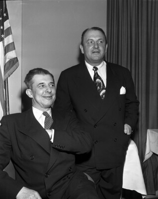 Dinner given at Hotel Texas for Ernest O. Thompson. Shown left to right, A. L. Soliday, executive vice president Stanolind Oil and Gas Company; Ralph O. Dietler, board chairman, Stanolind Oil Purchasing Company.