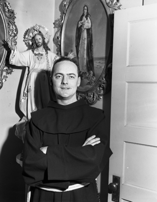 Image shows a bust shot of Franciscan missionary, Reverend Leo Malone. Leo Malone is a part of the Western Mission Band in Denver, Colorado. He is here to conduct a pre- Lent mission at Saint Patrick's Catholic Church. This is second trip to Texas. He is from Glen Falls, New York, attended University of Toronto in Canada, Franciscan College in Washington D. C. and performed graduate work in Spain. Published in the Fort Worth Star-Telegram evening edition, February 7, 1951.