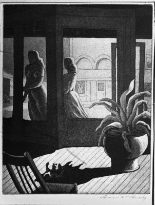 Image shows one of the prints showcasing the work of Loraine and Quintin McChristy, that were on exhibition at Colins Art Gallery at 400 Throckmorton. Published in the morning edition, February 18, 1951.
