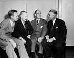 Image shows four Minor Leaguers seated exchanging promotion ideas. From left to right, Howard Green, E. J. Humphries, Robert Finch and Milton Price. Published in the Fort Worth Star-Telegram morning edition, February 8, 1951.