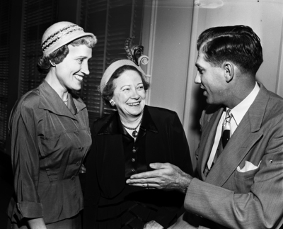 Image shows three speakers at the Fort Worth Parent- Teacher Associations (P-TA) City Council meeting at Founders Day luncheon given in Hotel Texas. From left to right, Miss Ruth Steidinger, Denton; Mrs. C. E. Eaton, Brownwood and Gordon L. Hollon Jr., Boerne. Published in the Fort Worth Star-Telegram evening edition, February 8, 1951.