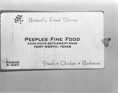Image shows evidence from the Nelson Harris murder case. The evidence appears to be a business card for People Fine Foods at 2533 White Settlement Road in Fort Worth, Texas.