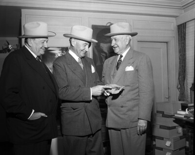 Amon Carter with officials of the Mutual Life Insurance Company of New York. Included are Clifford B. Reeves, Stanton Hale, Lewis W. Douglas, Roger Hull and Oliver M. Whipple.