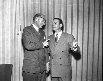 Series not published of Amon carter with officials of the Mutual Life Insurance Co. of New York. Included are Clifford B. Reeves, Stanton Hale, Lewis W. Douglas, Roger Hull and Oliver M. Whipple. The man with the eye patch is pointing at the man and the man to the right is talking about something out of frame.