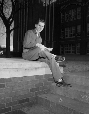 Flyweight Sterling Pruitt graduated during Spring 1951, enter North Texas State College to take up pre-med work. Published in the Fort Worth Star-Telegram morning edition, February 11, 1951.