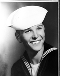 Image shows a copy of a picture of a bust shot of Gary R. Brock, sailor. Airman apprentice Gary R. Brock has returned to the Naval Air Station at North Island, San Diego, California after a 15 day leave with his parents, Mr. and Mrs. Joe Brock, 925 Weatherford. He is a former Technical High School student who enlisted in October 1950. He is shown in Naval sailor uniform. Published in the Fort Worth Star-Telegram morning edition, February 13, 1951.