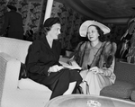 Image is from a series on the Junior League. Image shows Miss Ann Ryan, left, the public relations chairman for the league that year, speaking with the league's president, Mrs. E. T. Adair. Published in the morning edition, February 18, 1951.