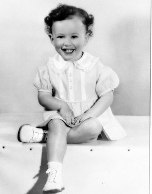 Image shows a copy of a picture of Cathy Taylor. She was drowned by her mother. She is shown seated in a dress. Published in the Fort Worth Star-Telegram morning edition, February 13, 1951.