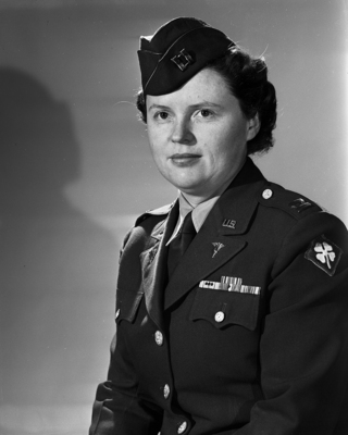 Image shows Captain Lillian Dunlap, sitting, looking slightly off to the left of the camera. She is wearing her uniform. Published in the evening edition, February 14, 1951.