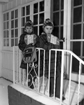 Kay, 8, left, and Kim Crawford, 6, right, are shown holding valentines that they were unable to deliver due to the weather. The girls are the daughters of Dr. and Mrs. William M. Crawford, of 904 Penn. Published in the morning edition, February 15, 1951.