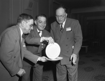 Image shows three past presidents of the Southwest Conference of Building Owners and Managers. From left to right, are John Stanley, of Fort Worth; Larry Fortassain, of San Antonio; and Sandy McNabb, of Dallas. Published in the evening edition, February 19, 1951.