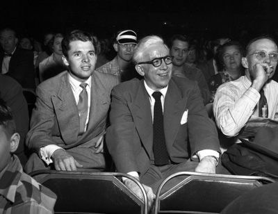 Image shows Audie Murphy, left, and Skipper Cherry at the Golden Gloves Tournament. Published in the evening edition, February 20, 1951.