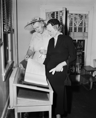 Executive committee members of the Woman's Board of the Fort Worth Children's Hospital are pictured. Memorial and honor Roll, being inspected by Mmes. F. Howard Walsh, and Hayden Hudson. Published in Fort Worth Star-Telegram morning edition July 15, 1951.