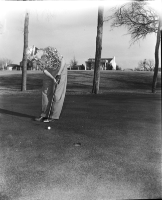 Grover Swift, candidate for golf team, practices at Worth Hills. Published in the Fort Worth Star-Telegram March 29, 1951.