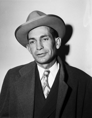 Image shows Austin Harris, brother of slain gambler Nelson Harris who was killed the previous fall by a gang-related bomb blast on November 22. . Published in the evening edition, February 22, 1951.