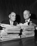 David Sellers, left, chairman of the advisory committee of the Star-Telegram's Scholastic Writing Award program, is shown being assisted by Edward Munden, a retired principal of Handley High School. The two men can be seen sorting through some of the 1,203 entries in the regional contest. The manuscripts were then turned over to a committee of judges. Published in the morning edition, February 25, 1951.