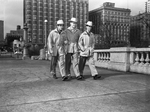 Image shows left to right, Featherweight Raymond Riojas, Lightweight Johnny O'Glee and Flyweight Pat Riley strolling on Michigan Boulevard, Chicago. Published in the Fort Worth Star-Telegram evening edition, February 28, 1951.