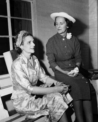 Image shows Mrs. Joe Clarke and Mrs. W. H. Peterson, Fort Worth. They are shown seated outside on a bench.