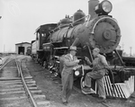 Talking over affairs of the unique Roscoe, Snyder and Pacific Railway Company are A. H. Haney, left, vice president in charge of operations and L. L. Prosser, master mechanic, who serves as roundhouse foreman at Roscoe. Published in Fort Worth Star-Telegram, morning edition March 18, 1951.