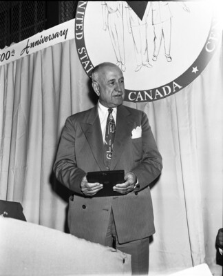 Amon Carter, holding his honorary life membership in the Fort Worth YMCA.
