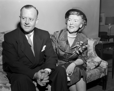 Image shows Mr. and Mrs. Perry Bowers, Winnipeg, Canada, seated on a couch. They have been visiting Mr. and Mrs. C. R. Hickman on their ranch near Aledo. Published in the Fort Worth Star-Telegram morning edition, March 10, 1951.
