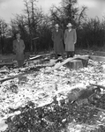 Image shows Deputy Sheriffs John Roberts, center, and J. V. Green searching for clues at the scene of a blast that demolished a vacant house in the John T. White community. Unidentified man left of John Roberts. Published in the Fort Worth Star-Telegram evening edition, March 9, 1951.