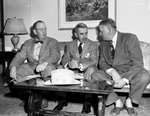 Image shows three men planning for the convention of the Texas and Southwestern Cattle Raiser Association. From left to right, W. R. Watt, director, Fort Worth; Ray Willoughby association president, center, San Angelo and C. E. Weymouth,vice president, Amarillo. They are shown to be seated on a couch. Published in the Fort Worth Star-Telegram morning edition, March 12, 1951.