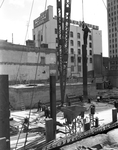 Image shows a construction site of the Fort Worth National Bank building at 7th and Main. A building permit for $4,983,000 was issued for the structure. The permit allows a 15 story building with basement. Preston M. Geren is architect and Thomas S. Bryne contractor. Published in the Fort Worth Star-Telegram morning edition, March 13, 1951.