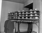 Image shows a shot of a western style hats resting on a rack at a Dallas Hotel. These hats are from the 74th annual convention of the Texas and Southwestern Cattle Raisers Association. Published in the Fort Worth Star-Telegram evening edition, March 13, 1951.