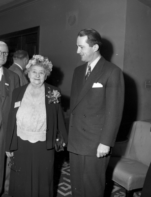 Image shows Mrs. W. W. Turney, El Paso, left and Governor Allan Shivers at the Texas and Southwestern Cattle Raisers Association meeting.