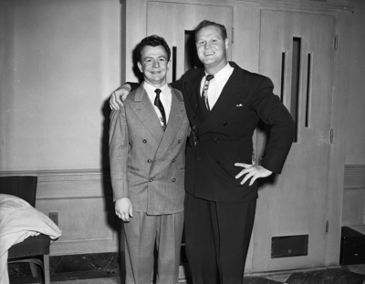 Captain Clarence Marable, right, and Co-Captain Charlie Jackson flash their best smiles after being chosen to lead the 1950 TCU football team.