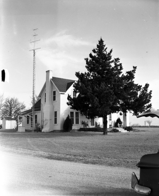 Image shows antenna installation on Tittle farm home near Bowie. The farm is owned by M. L. Tittle, Wichita Falls and is operated by his brother, R. M. Tittle. Published in the Fort Worth Star-Telegram April 1951.