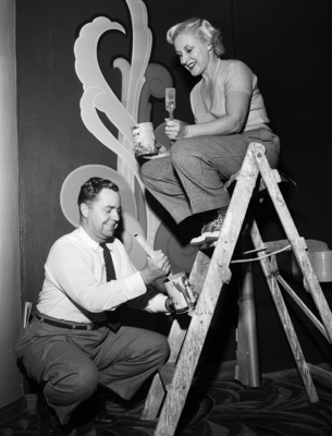 Pictured here is Harold Eppes, manager of The Arlington Theater, and Mrs. Eppes rush preparations for the opening of the 1,200-seat theater at 6:30 p.m. at Arlington.