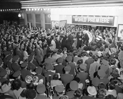 At the Worth Theater in downtown Fort Worth (one of three locations), a crowd of moviegoers are ready to attend the world premiere of "Follow the Sun" about golfer Ben Hogan.