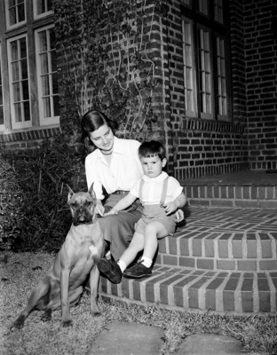 Mrs. William C. Bahan and her son, Bill, 5300 Bryce, with their Boxer, Coco. Published in Fort Worth Star-Telegram morning edition, April 1, 1951.