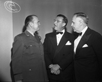 Brig. Gen. David W. Hutchinson, Sam Engel, producer of "Follow the Sun" and Dr. Alton S. Ochsner of New Orleans, left to right, converse before the world premiere of Hogan's life story. General Hutchinson arranged for a B-29 to fly Dr. Ochsner to El Paso, where he operated on Hogan after his near-fatal accident near Van Horn. Published in Fort Worth Star-Telegram, evening edition March 24, 1951.