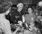 Mrs. J. A. Johnson, left, and Mrs. J. R. Jameson, chaplain, of the Fire Fighters Auxiliary, made a child happy with this Easter Basket. Published in Fort Worth Star-Telegram, morning edition March 25, 1951.