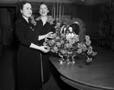 Pictured here is Mrs. Walter Wallerich, left, and Mrs. Arnett D. Ladd. They were hostesses at a brunch at the Woman's Club which had a valentine theme.