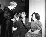 Mrs. Elmer G. Withers, left, talks with Sergeant and Mrs. A. J. Sklivis, recently assigned to Carswell Air Base from Birmingham, at a dance at Hotel Texas sponsored by Armed Forces Center for servicemen of all branches. Mrs. Withers is Senior hostess of the center which was activated last July. Published in Fort Worth Star-Telegram morning edition, April 2, 1951.