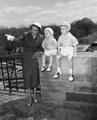 Mrs. David E. Goodrich shows her sons, Robert David, center, and Wade Sperry, a redbird flitting through the Botanic Garden. Published in Fort Worth Star-Telegram morning edition April 8, 1951.