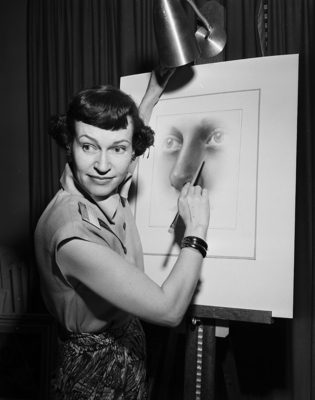 Image of Mrs. Marinell De Vries, shown sketching. Published in Fort Worth Star-Telegram evening edition April 11, 1951.