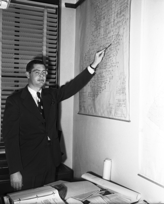 Pictured here is A. J. Betts, division reservoir engineer of the development section of the Fort Worth headquarters of the Texas producing division of the Pure Oil Company.