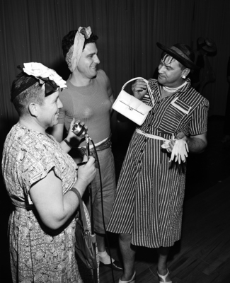 H. H. Nickleson Jr., Jack Kinne and L. W. Jemison, left to right, members of the B. H. Carroll School Dad's Club, give a preview of the organization's variety show scheduled for 8 p. m. in the school auditorium. Proceeds from the admission charge of 25 cents for adults and 9 cents for children will go to buy equipment for the school. Published in Fort Worth Star-Telegram morning edition April 18, 1951.