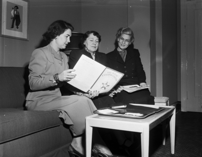Mrs. M. Howard Hodge, Midland, center, president of the TFWS, discuss federation affairs with Mrs. Tim H. Dunn, left, Fort Worth federation president, and Mrs. A. L. Wardlaw, headquarters trustee for the first District.