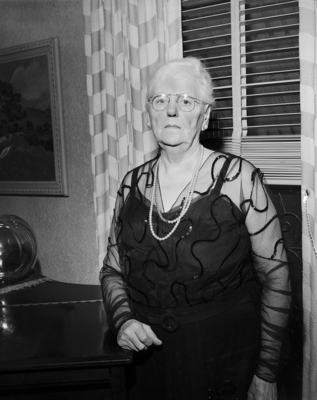 Image shows a bust shot of Mrs. C. A. Boaz. She is shown wearing a black dress. Published in the Fort Worth Star-Telegram evening edition, April 20, 1951.