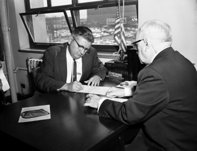 Bob Routt and Adil Sozmen scanning work being done on the East-West Freeway