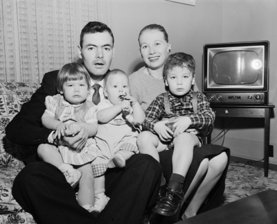 Mrs. Kenneth Leach and her children Linda and Caroline