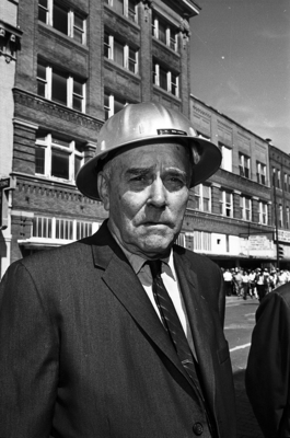 Photo highlighting Commissioner Bryan Henderson at the 14-block Tarrant County Convention Center site. He wore a red hat explaining because he under fire a little more that he's under bricks. He gets into hot controversies, to say the least. Fort Worth Star-Telegram Evening edition June 29, 1965