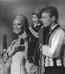 Six Flags Over Texas, Arlington; Jay Johnson and Carol Davis during their ventriloquist act in Campus Revue with Mr. Jay, the dummy [1966]