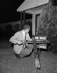 A reporter holds one of three crosses burned near African American homes in the Morningside area. Most homes in the predominantly white neighborhood now bear "for sale" signs. Pranksters were believed responsible for the cross burning incident.
